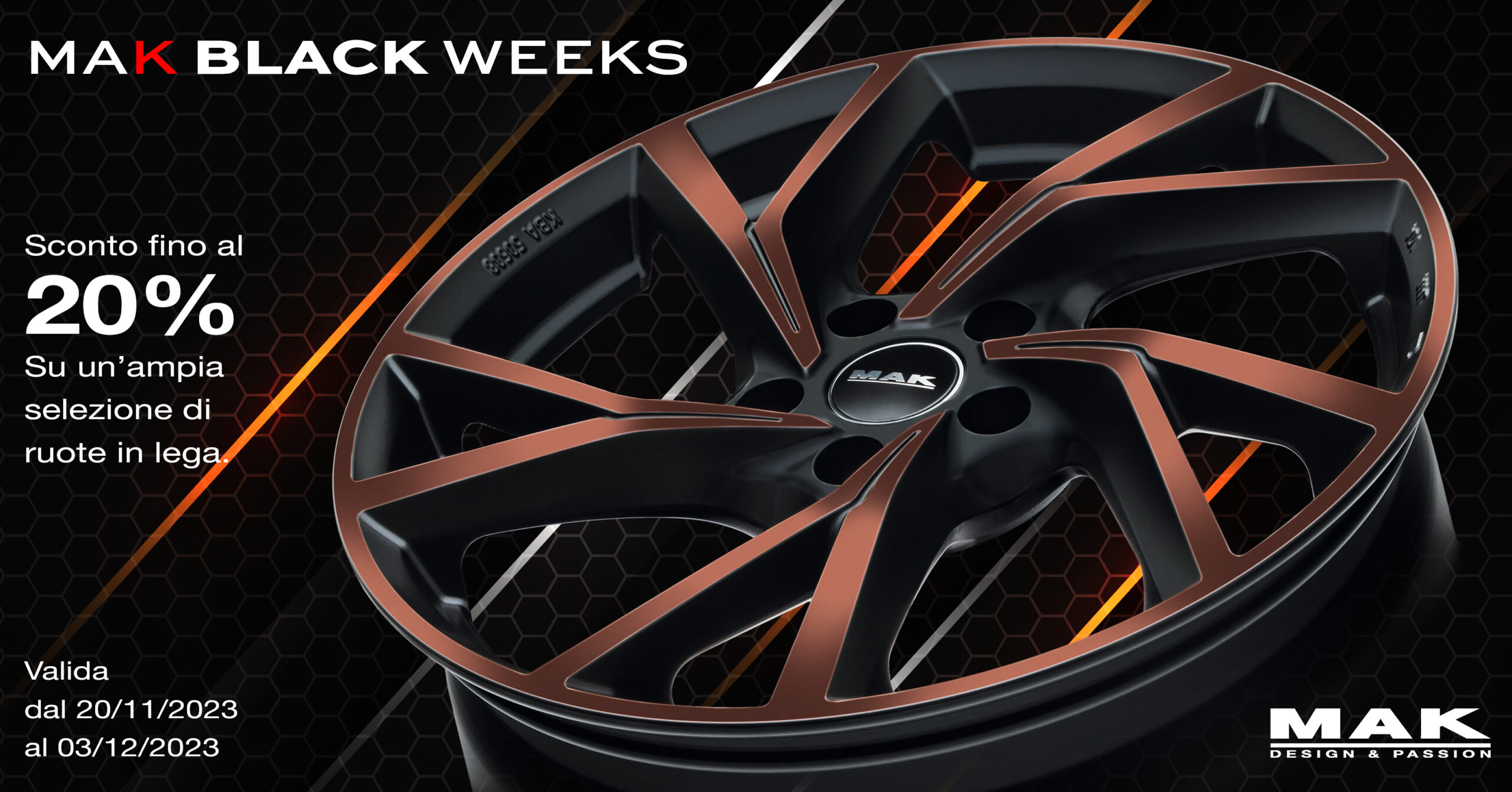 PRODOTTI PROMOZIONATI: fino al 20% di sconto su ruote in lega MAK e prodotti NPK, fino al 30% sui prodotti MATE come da allegato A.