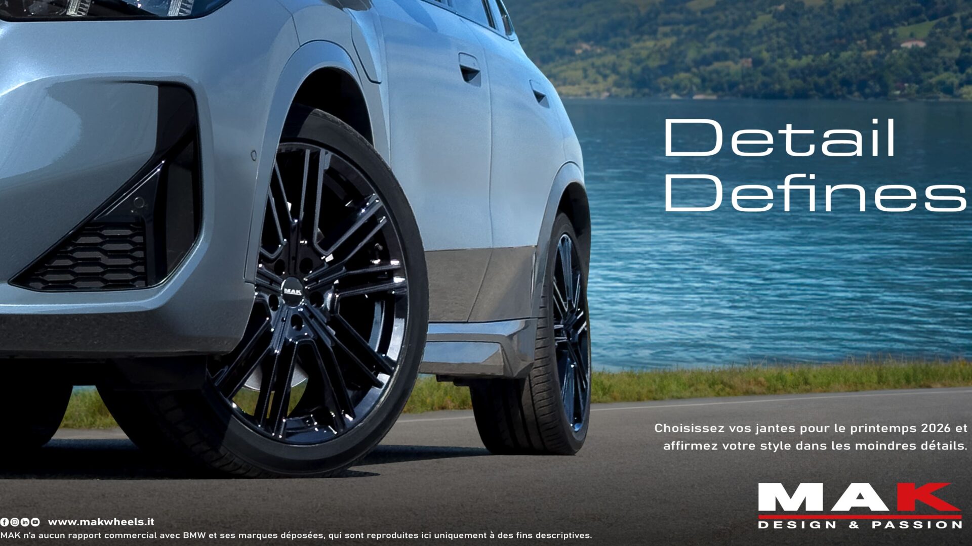 With a view to perfect balance of the entire wheel system, MAK also proposes its own Perfect Match Policy: a design philosophy aimed at achieving complete chromatic harmony across all components. The company always recommends the correct combination of accessories such as centre caps, TPMS valves and bolts, to deliver a coordinated, clean result fully aligned with the product’s premium quality standards.